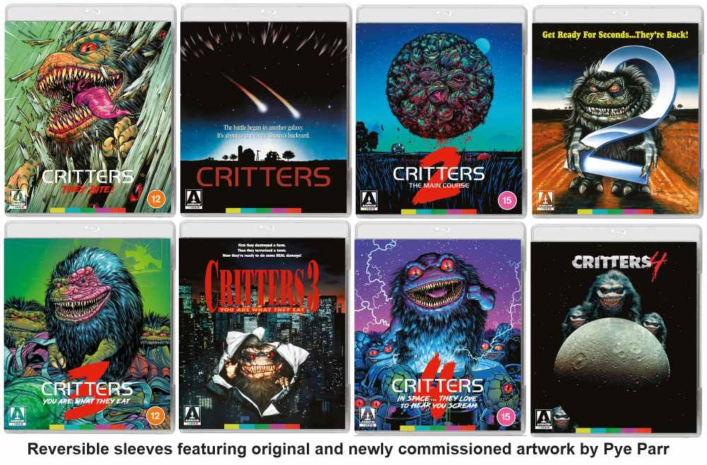 Critters pristáli! Mäsožravé stvorenia z vesmíru! Divoké príšery s mimoriadne ostrými zubami! Obľúbená sci-fi/komediálno-hororová séria prichádza po prvýkrát na Blu-ray vo Veľkej Británii v tejto špeciálnej edícii od Arrow Video.